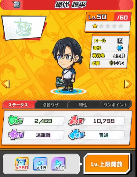 レアリティのRは、レベル上限あげるには、大体がカラーメモリーブルーが必要で
